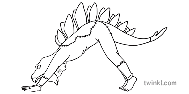 Stegosaurus Yoga Pose Black And White Rgb Illustration Twinkl
